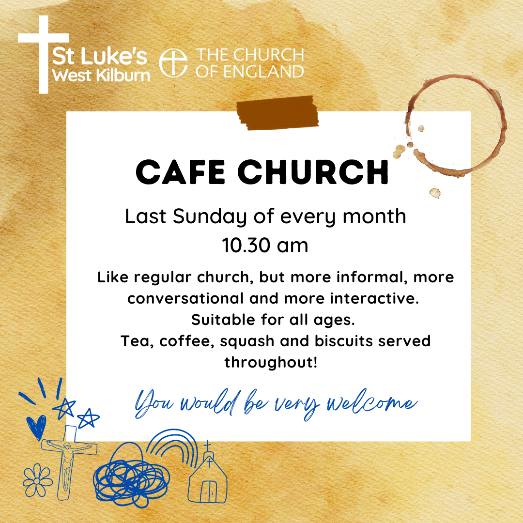 On the last Sunday of each month, we do our 10.30am service a bit differently and have Cafe Church where all ages worship, pray and reflect on the bible together.